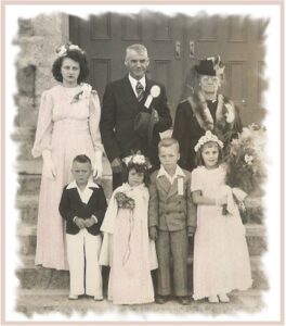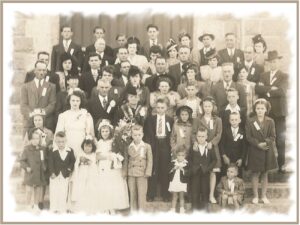 Mes grands-parents ne l’ont pas eu facile, ils eurent 12 enfants et vivaient sur une grande terre agricole mais la Grande Dépression de 1929 se fait cruellement sentir et tout perd de la valeur et c’est pratiquement la faillite. Tout le monde était touché d’une façon ou d’une autre et c’était très difficile de nourrir cette grande famille. C’est ce dont je me souviens des confidences de ma mère il y a surement bien des détails qui m’échappent. En 1947, la famille est réunie pour fêter le 50 e anniversaire de mariage de Marie Collard et Charles Fortin, mes grands-parents.