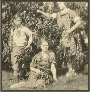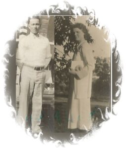 A l’été 1937, mes parents sont venus me présenter à la parenté du Nouveau-Brunswick. Les photos sont très petites, et pas jeunes, mais elles représentent le parcours d’une vie bien remplie. A gauche je suis dans les bras de tante Alma. A droite mes parents.