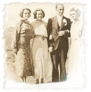 Les inséparables, maman et tante Bella avec mon oncle Clément. Tante Irma était aussi très souvent avec ses deux sœurs. Demeurant l’une près de l’autre, elles faisaient partie de mon quotidien et c’étaient des mères pour moi.